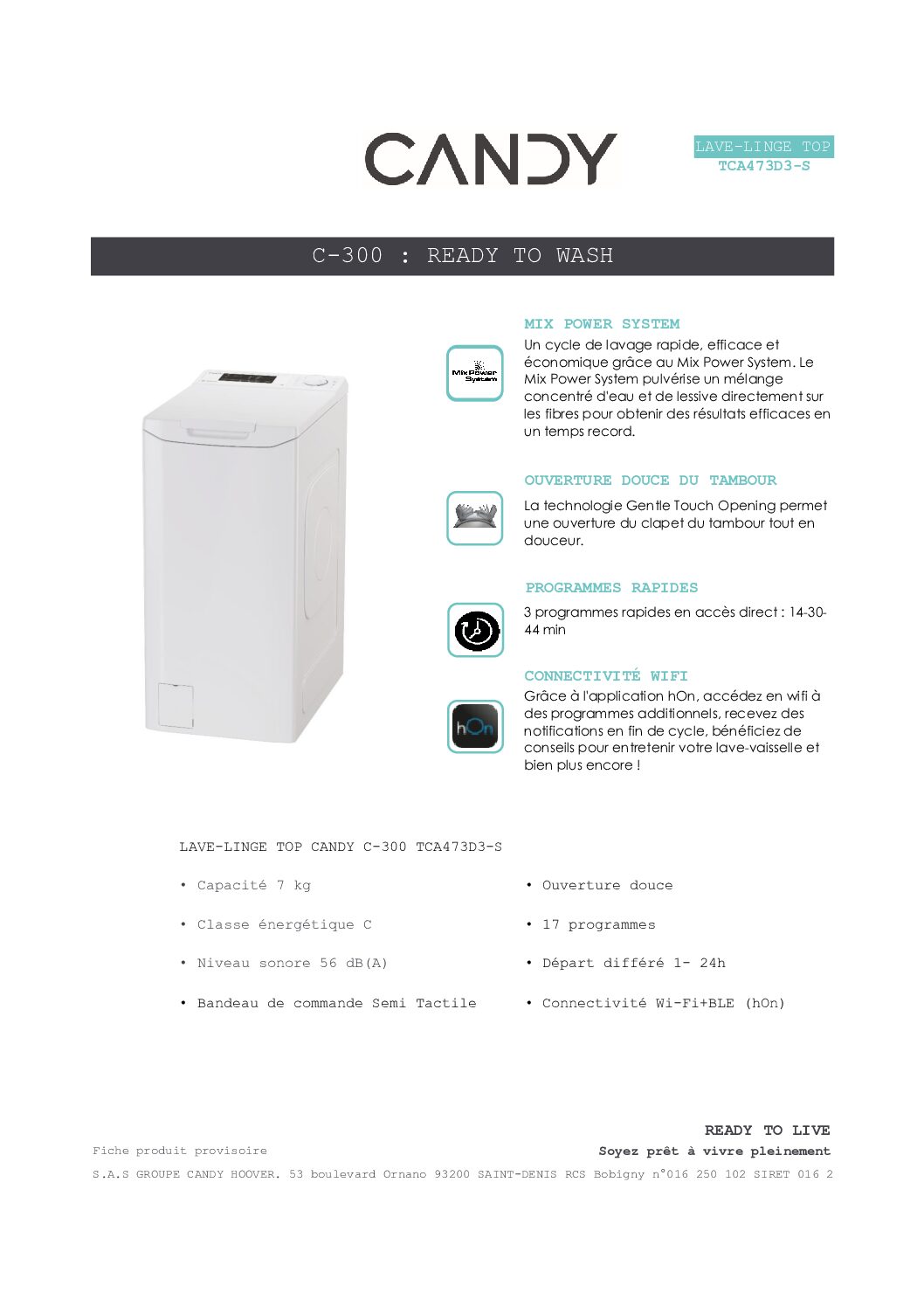 CANDY, Lavage / Séchage, Lave linge TOP, Lave-linge